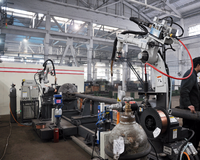 為確保塔機(jī)產(chǎn)品的工藝質(zhì)量,提高生產(chǎn)效率,集團(tuán)公司進(jìn)一步加大技改投資,近日,又一套用于塔機(jī)標(biāo)準(zhǔn)節(jié)的焊接機(jī)器人系統(tǒng),投入使用。